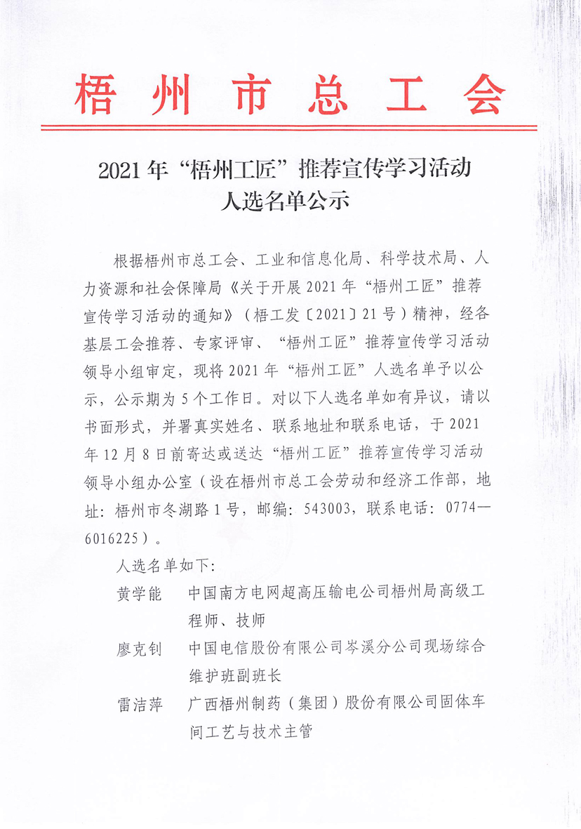 2021年“梧州工匠”推薦宣傳學(xué)習(xí)活動(dòng)人選名單公示