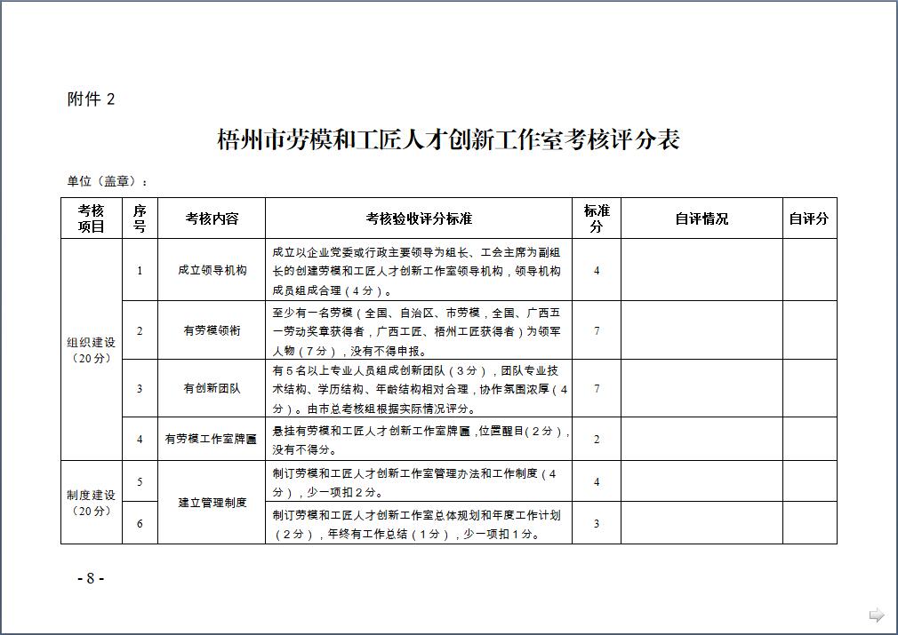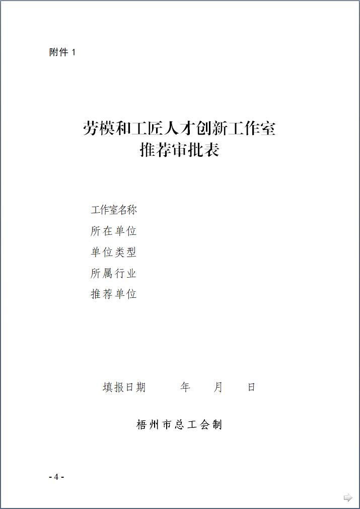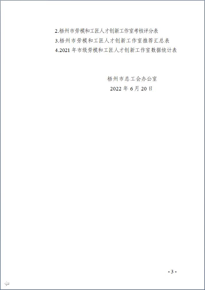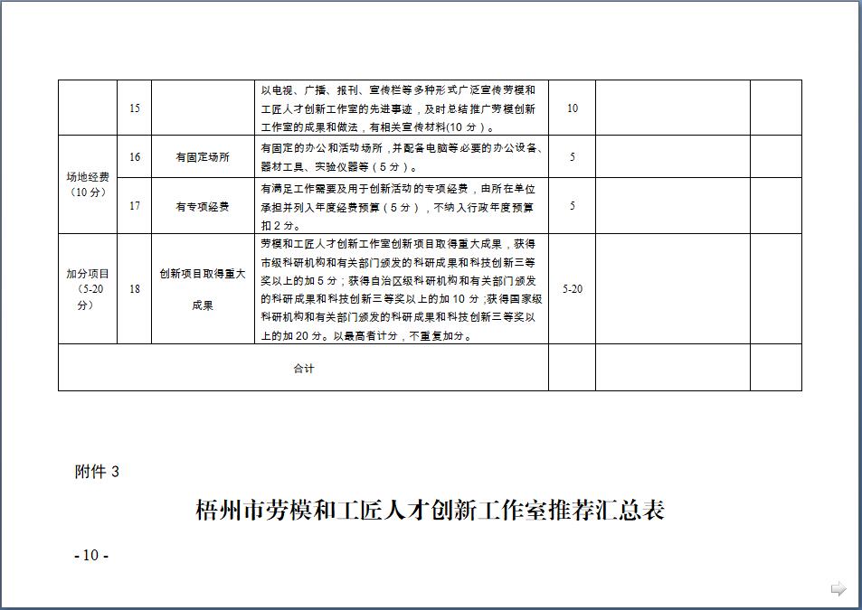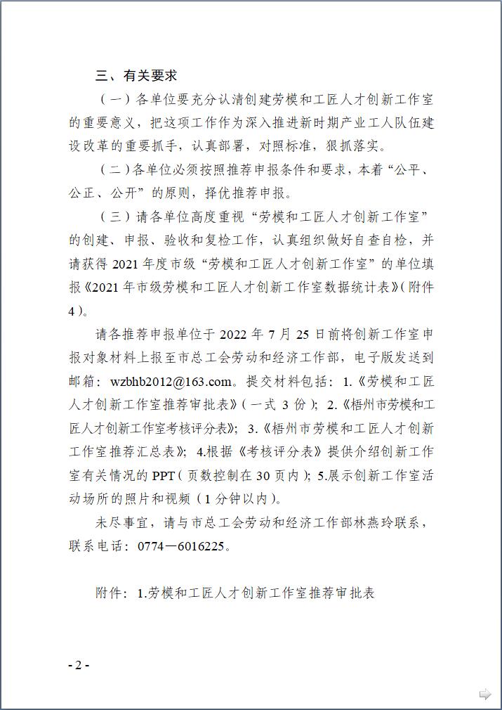 關(guān)于開展2022年度梧州市勞模和工匠人才創(chuàng)新工作室評選申報工作的通知