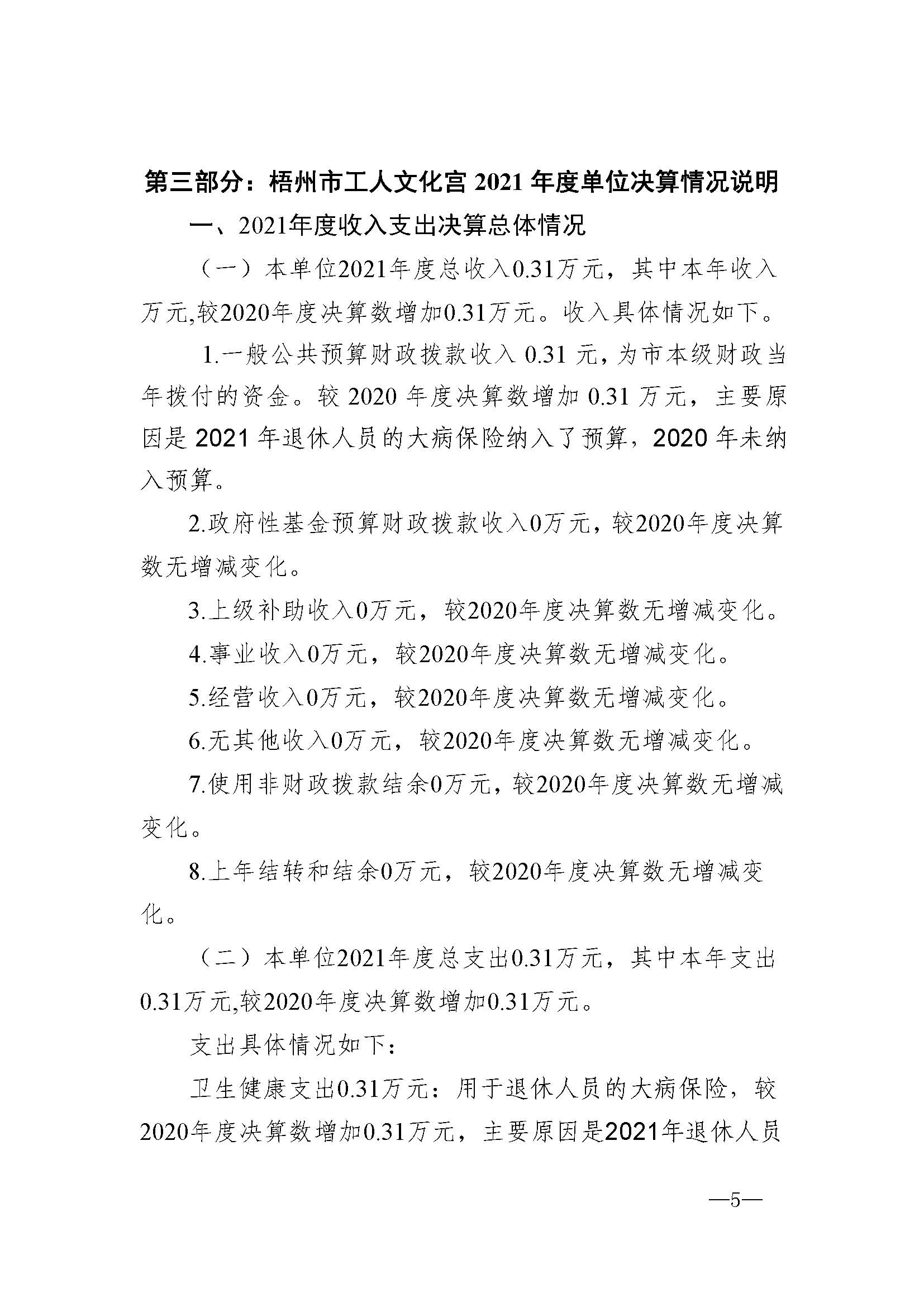 梧州市工人文化宮2021年單位結算