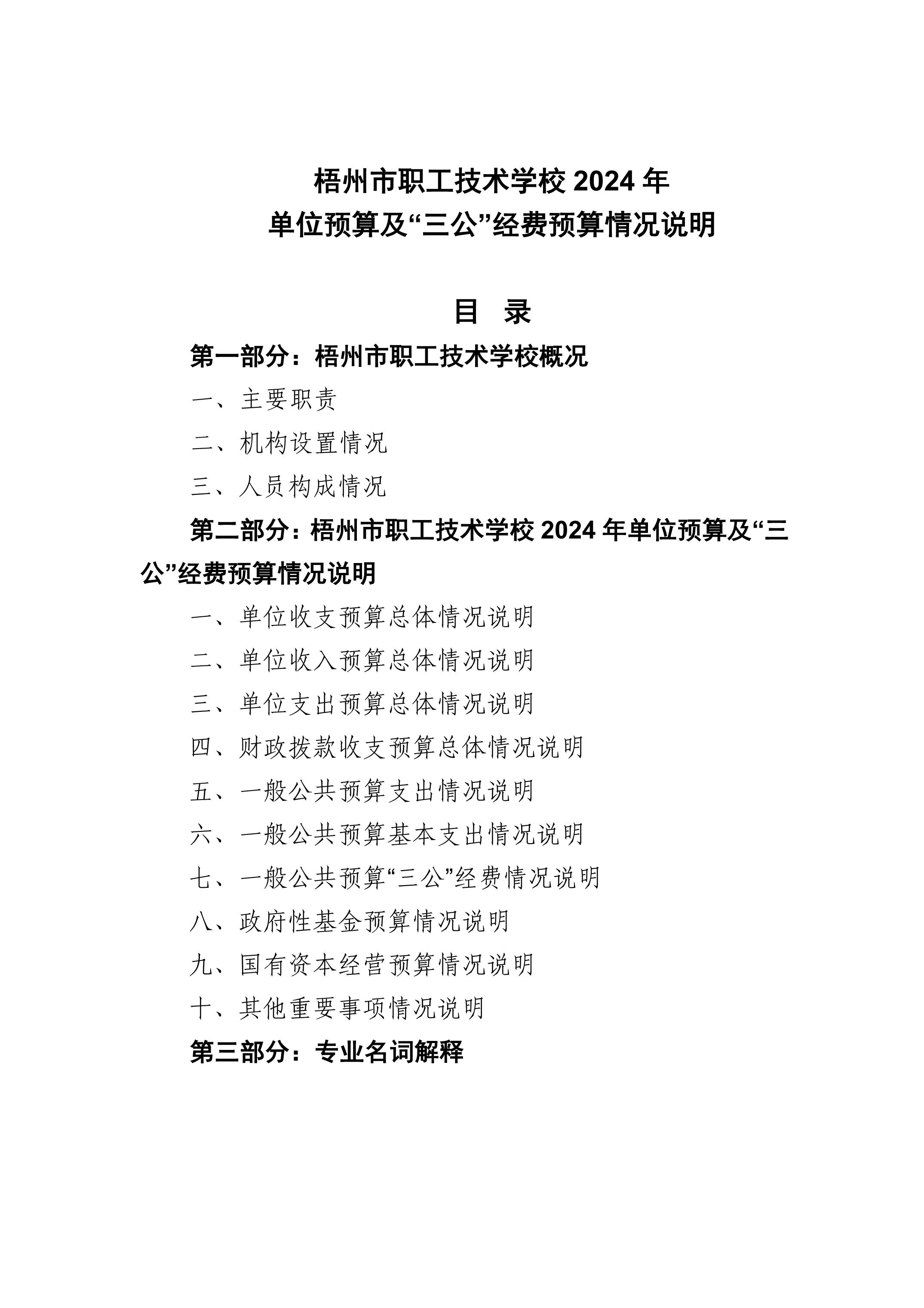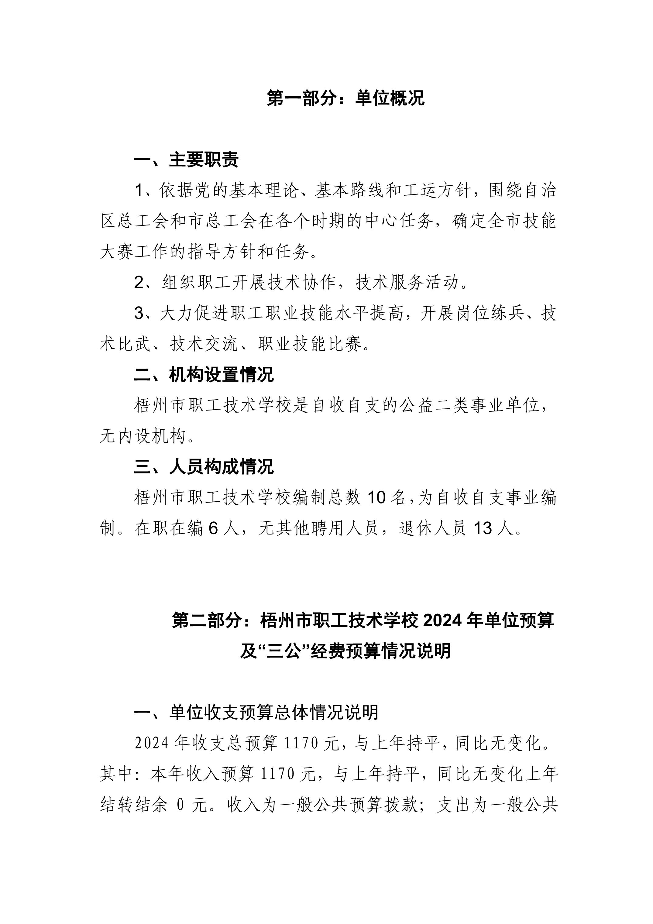[單位預(yù)算]梧州市職工技術(shù)學(xué)校2024年單位預(yù)算及“三公”經(jīng)費預(yù)算情況說明