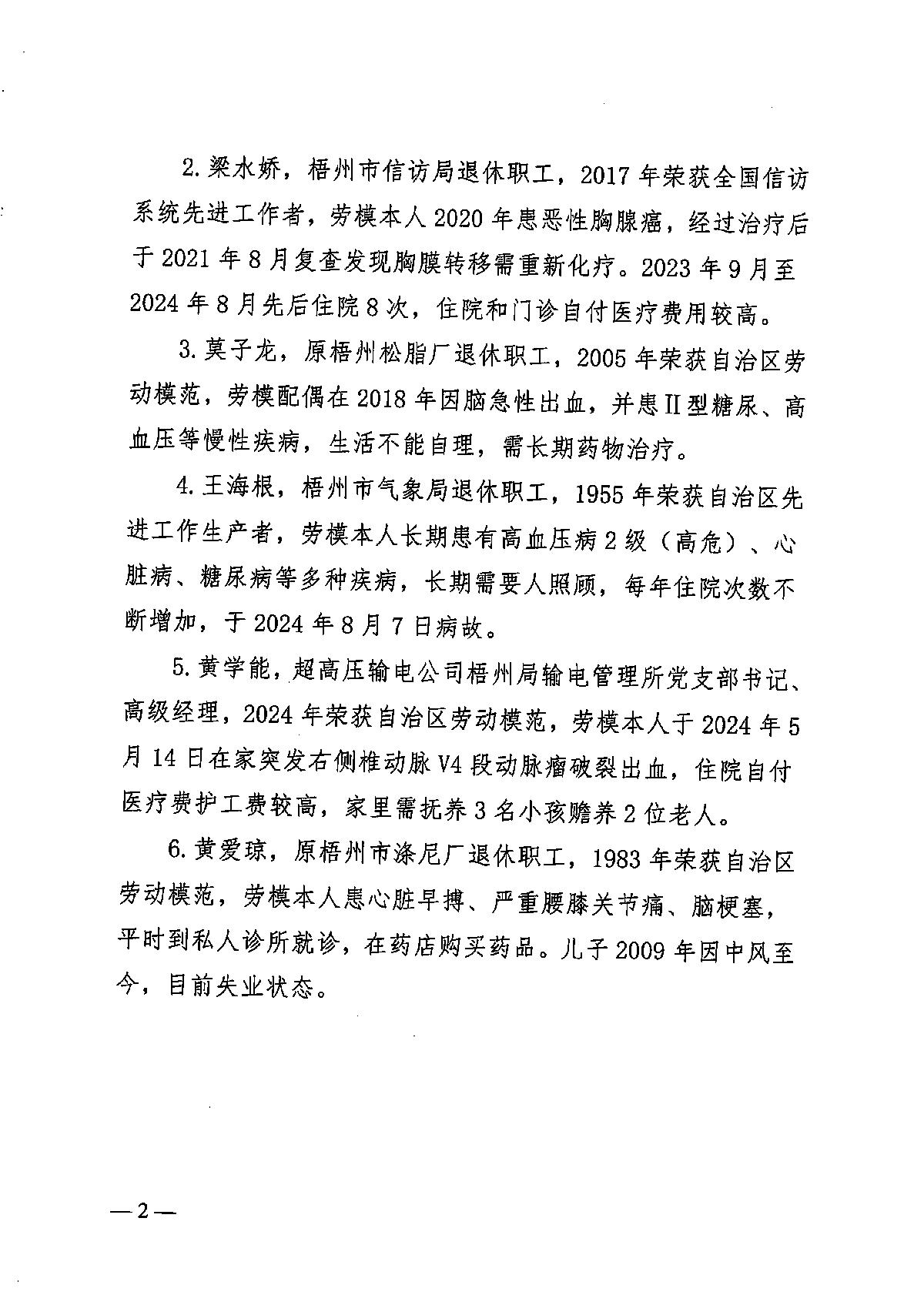 2024年梧州市(本級)自治區(qū)困難勞模公示名單
