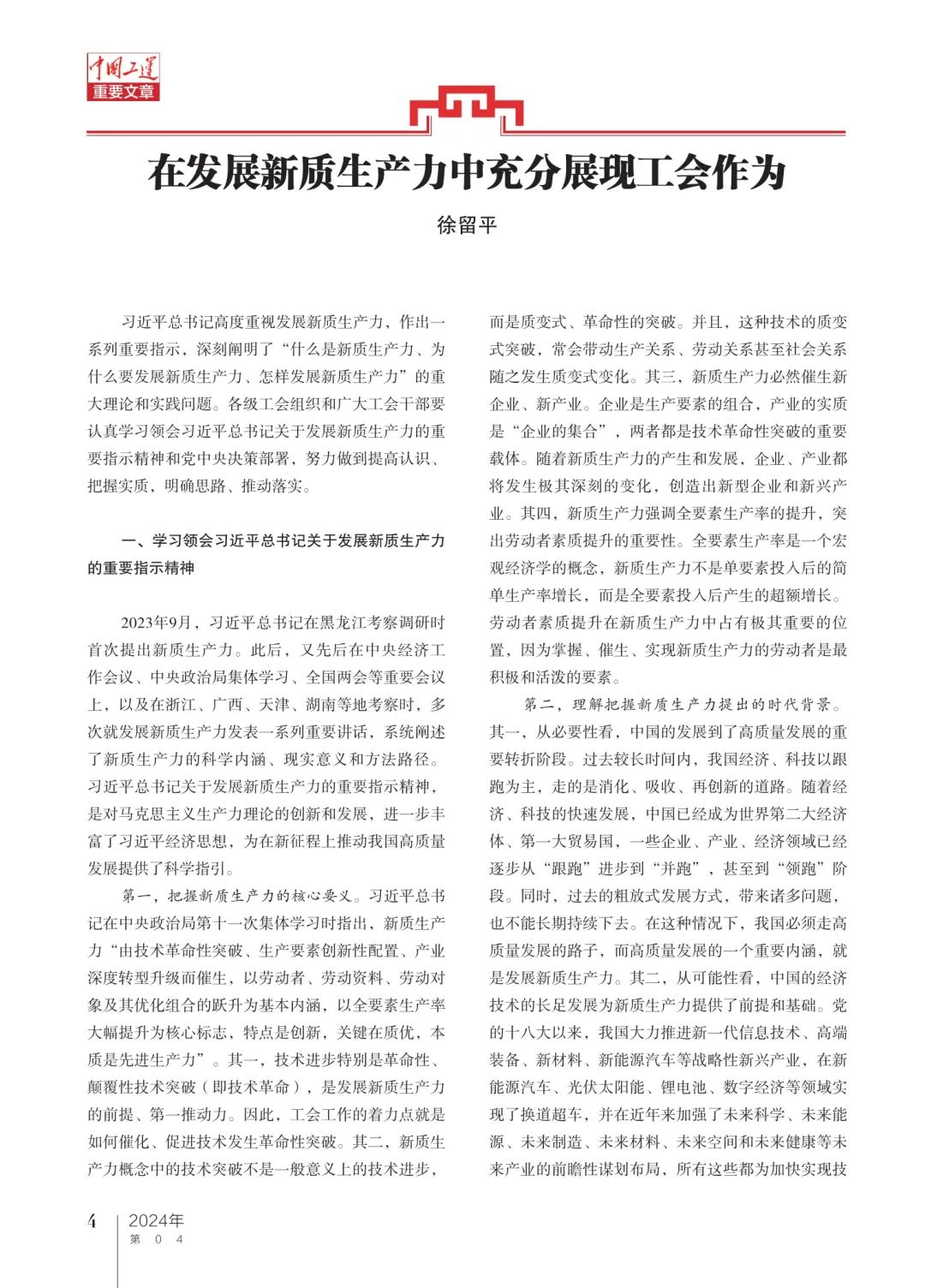 徐留平:在發(fā)展新質(zhì)生產(chǎn)力中充分展現(xiàn)工會作為