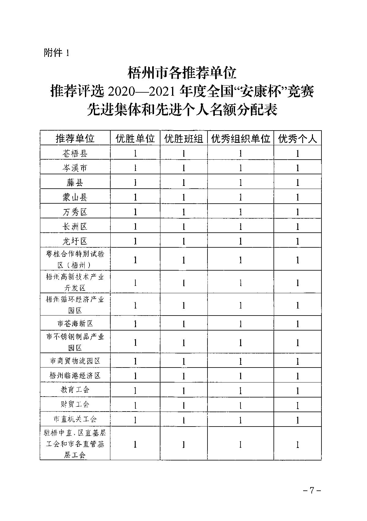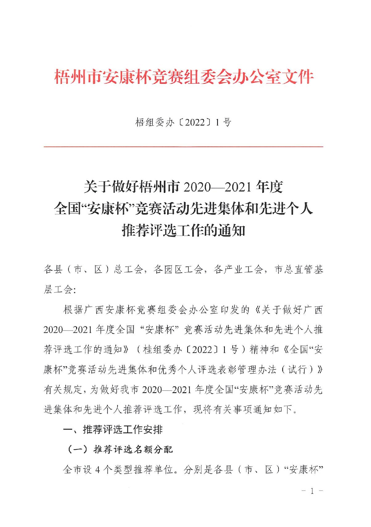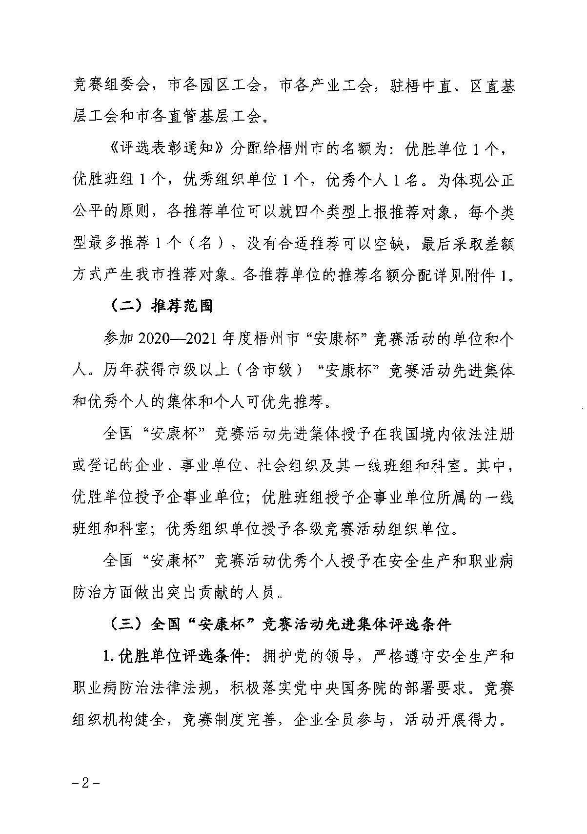 關于做好梧州市2020—2021年度全國安康杯競賽活動先進集體和先進個人推薦評選工作的通知